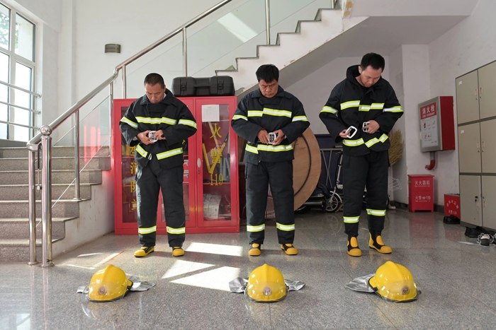 疏散警報響起后,總部干部職工聞警即動,快速而有序疏散;華騰發(fā)展大廈微型消防站同步啟動,消防站隊員裝備齊整、動作標準,精準執(zhí)行預案任務。
