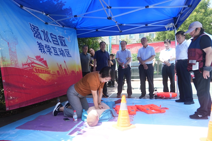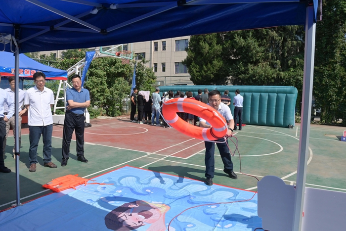 演練結(jié)束后,舉辦方在大廈籃球場開啟安全咨詢體驗活動。整個活動共設置了6個項目,分別為擁擠踩踏應急處置體驗區(qū)(充氣帳篷)、消防隱患排查試驗區(qū)、電動車電池穿刺爆燃體驗裝置、溺水自救互救教學培訓區(qū)、醉酒交通AR模擬體驗、安全標志互動區(qū)。活動現(xiàn)場氣氛熱烈,盡管天氣炎熱,但絲毫沒有減弱大家體驗掌握應急技能的熱情。