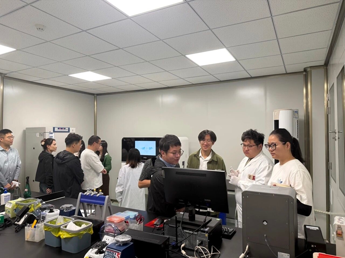團(tuán)員青年們來(lái)到毗鄰清華大學(xué)、北京大學(xué)的北化生科公司國(guó)際生物島現(xiàn)場(chǎng)參觀學(xué)習(xí)。工作人員介紹了北化生科公司的整體規(guī)劃與發(fā)展歷程,重點(diǎn)介紹了集團(tuán)生物醫(yī)藥產(chǎn)業(yè)布局、核心服務(wù)平臺(tái)功能、重點(diǎn)產(chǎn)業(yè)集群優(yōu)勢(shì)以及未來(lái)發(fā)展目標(biāo)愿景。隨后,團(tuán)員青年們走進(jìn)實(shí)驗(yàn)室,專業(yè)人員為他們講解了基因測(cè)序等基礎(chǔ)知識(shí),并結(jié)合正在開展的科研項(xiàng)目,生動(dòng)介紹了這些技術(shù)在實(shí)際研發(fā)中的應(yīng)用場(chǎng)景與巨大潛力。