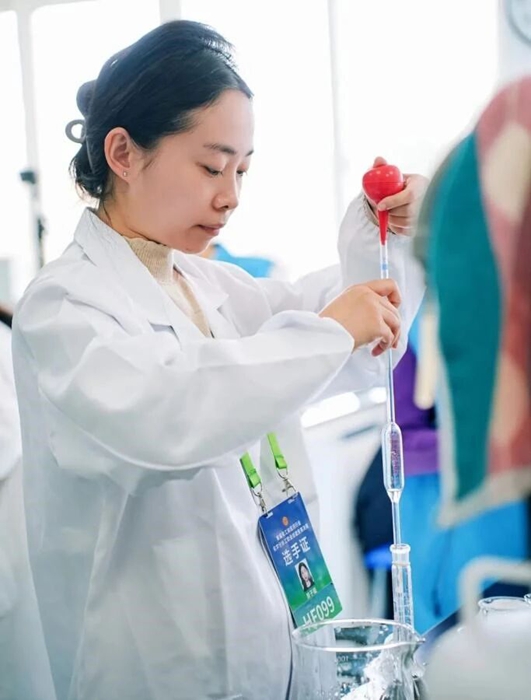 經(jīng)過激烈角逐,竇子璇在集團(tuán)競(jìng)賽中獲得第一名,拿到全國(guó)總決賽“入場(chǎng)券”。在決賽環(huán)節(jié),面對(duì)高強(qiáng)度考核,竇子璇心態(tài)沉穩(wěn),處理樣品時(shí),她手持移液管姿勢(shì)標(biāo)準(zhǔn),精準(zhǔn)移?。粌x器操作中,她熟練調(diào)試參數(shù),動(dòng)作流暢;數(shù)據(jù)分析階段,她嚴(yán)謹(jǐn)推導(dǎo),不放過細(xì)微誤差。