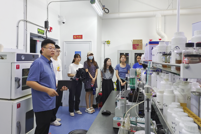 隨后,在總工程師崔正的帶領(lǐng)下,師生參觀了華騰新材辦公場所、產(chǎn)品陳列、實驗室等,促進(jìn)了學(xué)生們對理論知識與生產(chǎn)應(yīng)用相結(jié)合的感知,也對實驗室安全管理有了更加直觀的認(rèn)識。