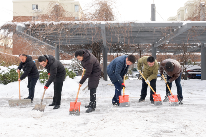 剛到單位的干部職工,紛紛拿起掃帚、鐵鍬,加入到掃雪除冰大“會戰(zhàn)”的隊(duì)伍中。大家齊心協(xié)力、現(xiàn)場一片熱火朝天,干凈整潔的道路很快清掃出來,保證了干部職工出行安全。