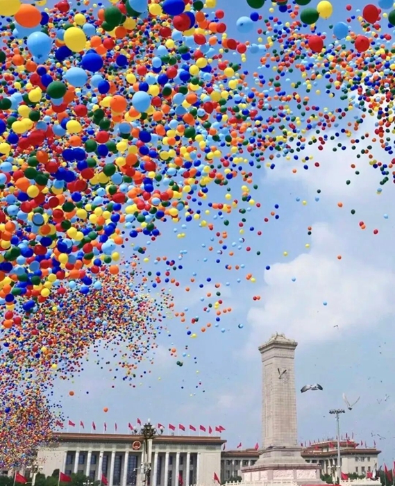 9月3日,紀念中國人民抗日戰(zhàn)爭暨世界反法西斯戰(zhàn)爭勝利80周年大會在北京天安門廣場隆重舉行。當人們沉浸在雄渾威武的解放軍受閱部隊和滾滾鐵流中時,騰空而起的8萬支彩色氣球,伴隨著翱翔的和平鴿,將天安門廣場上空渲染得五彩繽紛、銳氣祥和,瞬間將紀念大會再次推向高潮。