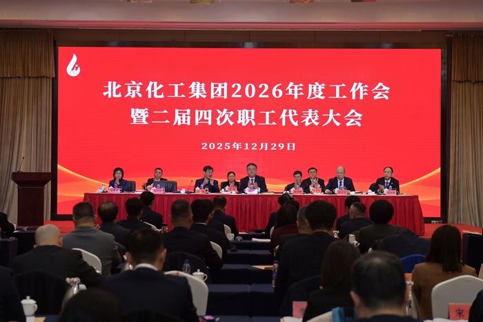 12月29日,北京化工集團(tuán)召開2026年度工作會暨二屆四次職工代表大會,黨委書記、董事長陳宇以《堅(jiān)持“231”戰(zhàn)略布局和“三個(gè)北化”建設(shè)不動搖 奮力書寫集團(tuán)公司“十五五”時(shí)期高質(zhì)量發(fā)展的嶄新篇章》為題作總結(jié)講話,黨委副書記、董事、總經(jīng)理?xiàng)钚褫x以《砥礪收官“十四五” 擘畫啟航“十五五”——為打造國內(nèi)領(lǐng)先國際知名的創(chuàng)新型企業(yè)集團(tuán)而奮斗》為題作工作報(bào)告,黨委常委、副總經(jīng)理韓寶海主持會議。