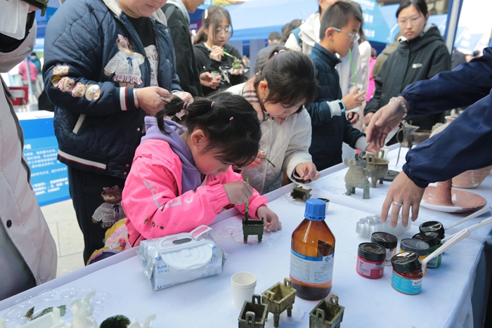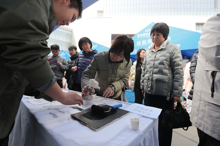 技師學(xué)院專門組織相關(guān)專業(yè)師生展演的文物修復(fù)體驗(yàn)項(xiàng)目受到廣泛關(guān)注。高超的專業(yè)技能、熱情的服務(wù)、精彩的現(xiàn)場講解與操作體驗(yàn),贏得眾多市民駐足觀看,成為一個(gè)亮眼的“打卡點(diǎn)”。與會(huì)嘉賓也被吸引,紛紛蒞臨技師學(xué)院展位,親自體驗(yàn)現(xiàn)場展示項(xiàng)目,詳細(xì)了解技師學(xué)院相關(guān)辦學(xué)成果,并給予高度評(píng)價(jià)。